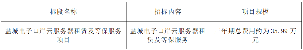 一、?鹽城電子口岸有限公司?就鹽城電子口岸云服務器租賃及等保服務項目進行公開招標,誠邀合格的投標人前來報名參加。