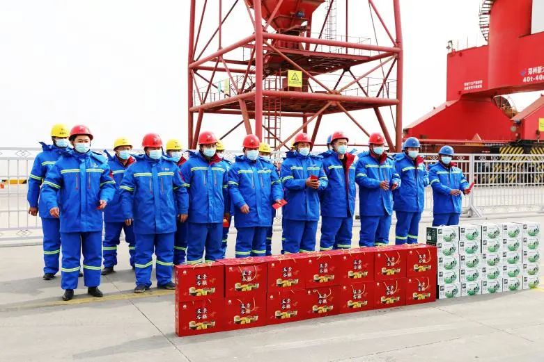 在大豐港區(qū)集裝箱碼頭,周正雄和堅守崗位的工作人員一一握手,感謝大家的默默奉獻(xiàn),為保障港口安全平穩(wěn)運行而付出的努力,并向他們送上慰問品。他說,去年以來,集團(tuán)統(tǒng)籌做好安全生產(chǎn)和疫情防控各項工作,并取得了良好的業(yè)績,這離不開全體員工的共同努力和無私奉獻(xiàn),離不開員工家屬對集團(tuán)的信任和關(guān)心,更離不開家屬們對員工的支持和理解。希望全體員工按照集團(tuán)黨委的要求,切實利用好“早晨會、晚匯報”這一工作模式,對晨會的形式和內(nèi)容進(jìn)行再融合再提升,更加全身心地投入工作,全力打造出一支港口鐵軍隊伍,為鹽城港人樹立榜樣,全面激活港口活力,增強(qiáng)發(fā)展后勁,為完成全年和各項工作目標(biāo)而繼續(xù)努力、繼續(xù)奮斗。
