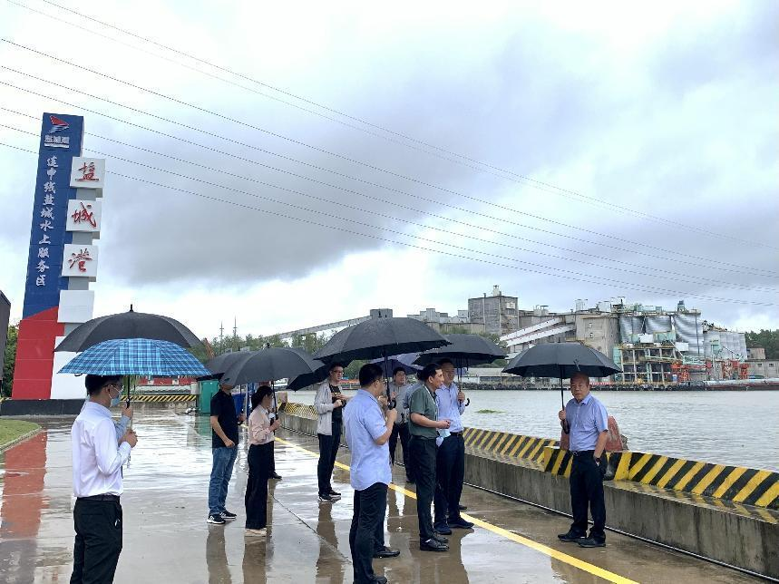 在新洋港水上服務(wù)區(qū),陳正華和水上服務(wù)區(qū)負(fù)責(zé)人分別匯報(bào)了鹽城港水上服務(wù)區(qū)為內(nèi)河船民停靠服務(wù)的5類23項(xiàng)服務(wù)功能,以及目前全市首家水上加油加氣站的建設(shè)進(jìn)度情況。