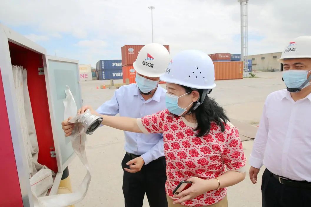 9月30日上午,鹽城港集團副總經理袁欣前往鹽城港集裝箱堆場檢查“三位一體一穩”工作開展情況。航運集團相關負責同志參加。