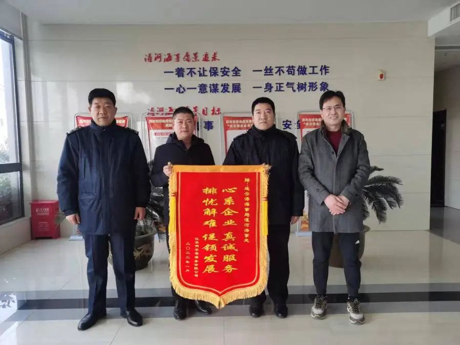 1月29日上午,響水港區港務公司組織部分職工拜訪了連云港海事局指揮中心和灌河海事處,并分別向指揮中心和灌河海事處贈送錦旗,對其一年來對響水港區的關心與支持表示衷心感謝。