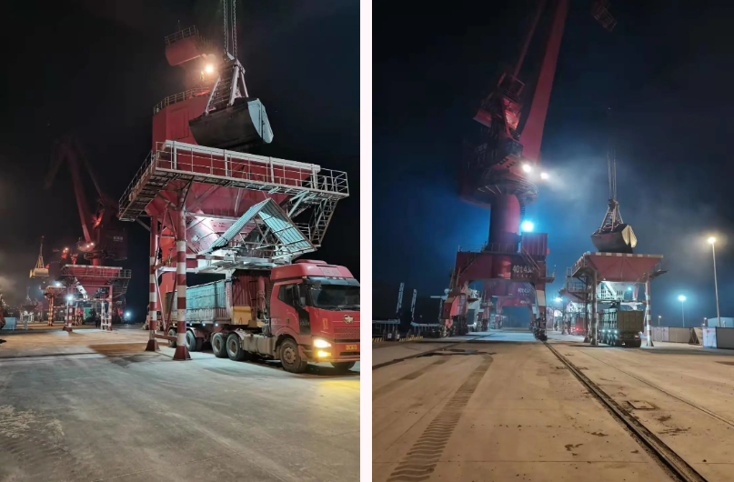 面對壓力,響水港區生產經營團隊始終站在服務客戶角度,急客戶所急,統籌考慮利用所有碼頭資源,綜合考慮客戶需求、船舶類型等方面,碼頭設施設定生產目標,靶向發力,利用甲板船自卸特點,結合目前重件碼頭尚沒有起吊設施只有碼頭岸線現況,經與海事等部門溝通協商,最終安排“源鑫168”甲板船靠泊重件碼頭泊位進行自卸,將“通洋旭瑞”和“盛山”兩艘次大輪靠泊4#、5#泊位作業,確保三條大輪同時順利完成接卸任務。