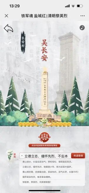 由于疫情原因,今年各大公墓閉園,暫?,F場祭掃活動,鹽城港大豐港區積極響應鹽城市“鐵軍魂鹽城紅”清明祭英烈云祭掃的號召,開展“清明祭英烈·云端寄哀思”活動。