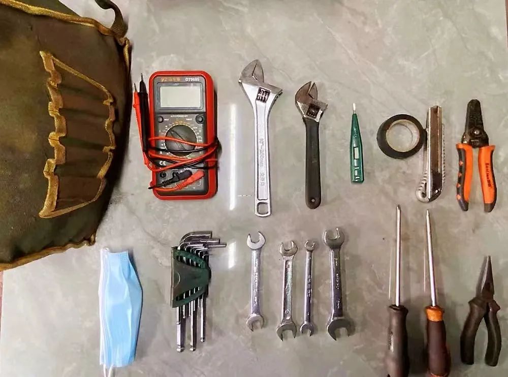 萬(wàn)用表、尖嘴鉗、試電筆、絕緣膠帶……