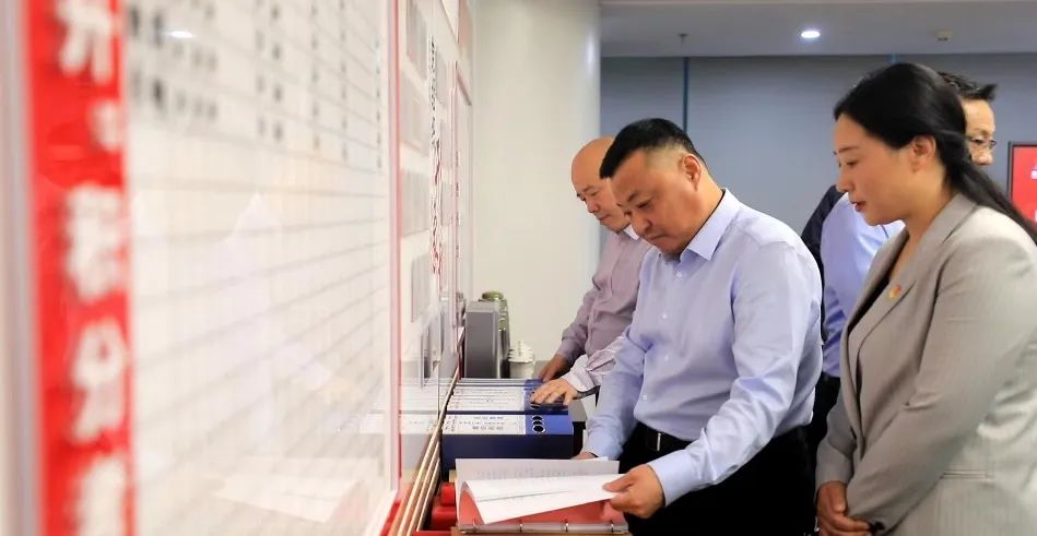 與會人員現(xiàn)場觀摩了陸港集團機關(guān)黨支部黨建、群團開展工作亮點展示,詳細了解該支部標準化建設臺賬資料整理、黨建陣地規(guī)范化建設情況。