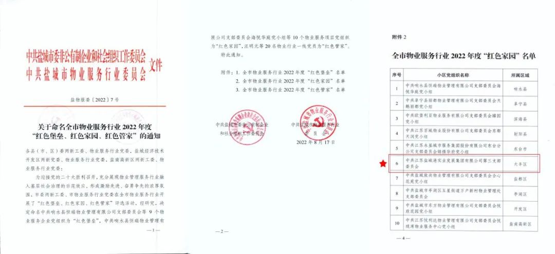 鹽城港物業喜獲2022年度市級“紅色家園”榮譽稱號