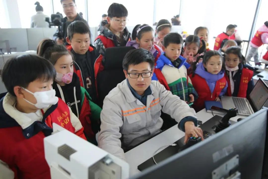 在現(xiàn)場(chǎng)講解員的帶領(lǐng)下,同學(xué)們整齊有序地排好隊(duì)伍,走進(jìn)鹽城港大豐港區(qū)自動(dòng)化集裝箱堆場(chǎng)中控室,“這些設(shè)備好先進(jìn)啊,我從來(lái)沒(méi)見(jiàn)過(guò)這些‘大家伙’,真是太壯觀了。”“只要輕輕一撥就能抬起那么大的集裝箱柜,這也太酷了,長(zhǎng)大后我也想到鹽城港操控這些先進(jìn)的機(jī)器。”……在講解和參觀過(guò)程中,同學(xué)們表現(xiàn)出了濃烈的好奇心,尤其對(duì)鹽城港建成江蘇沿海地區(qū)首個(gè)自動(dòng)化集裝箱堆場(chǎng)贊嘆不已,并圍繞5G、大數(shù)據(jù)、云計(jì)算等方面,踴躍提出問(wèn)題,講解員用生動(dòng)形象的表達(dá)方式一一給予解答,讓同學(xué)們親身感受到了“科技賦能、創(chuàng)新驅(qū)動(dòng)”為港口帶來(lái)的深刻變化,進(jìn)一步激發(fā)出他們對(duì)學(xué)習(xí)科學(xué)知識(shí)、探索未知領(lǐng)域的極大興趣。