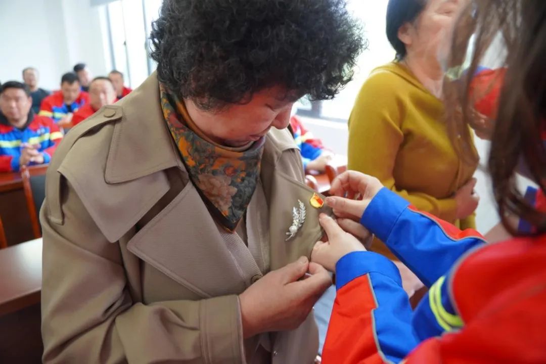 為黨員媽媽佩戴黨徽
