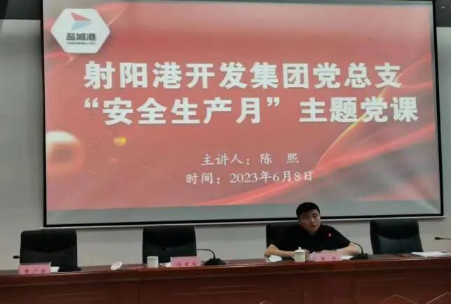 為切實發(fā)揮各級黨組織和廣大黨員在安全生產(chǎn)中的戰(zhàn)斗堡壘作用和先鋒模范作用,近日,射陽港區(qū)黨總支根據(jù)近年來習(xí)近平總書記關(guān)于安全生產(chǎn)的重要論述,結(jié)合港區(qū)安全風(fēng)險點,為全體員工和駐港單位上了一堂安全生產(chǎn)主題黨課,要求與會人員強化防范措施,在狠抓工作落實的同時,嚴(yán)格統(tǒng)籌發(fā)展和安全。
