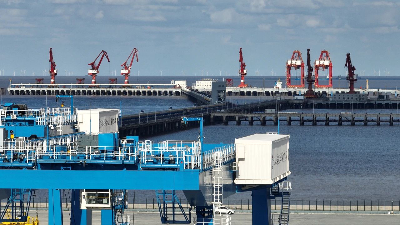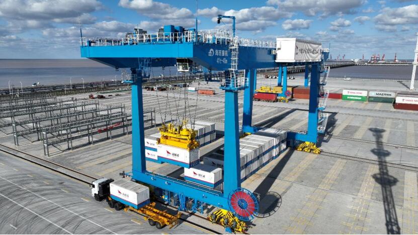 這是大豐港區自動化集裝箱堆場設立后