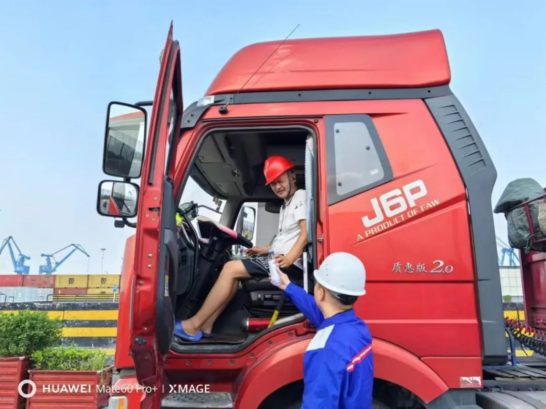 雖已入秋,碼頭高溫不減。一輛輛卡車排列在碼頭,靜靜等待土石裝卸運(yùn)輸指令,卡車司機(jī)也一同經(jīng)歷著高溫的考驗(yàn)。為確??ㄜ囁緳C(jī)們的安全與健康,保障運(yùn)輸不斷檔,港區(qū)派專人為司機(jī)送去礦泉水等清涼物資,并叮囑他們行車前要仔細(xì)檢查車況,注意駕駛安全,預(yù)防高溫中暑和各類安全事故發(fā)生。貨車司機(jī)們紛紛表示,這樣的關(guān)懷讓他們感受到了絲絲涼意和滿滿溫情。