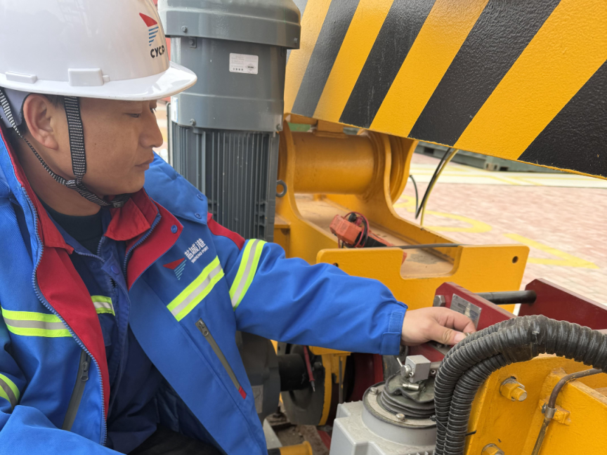 科技集團(tuán)港機(jī)公司的技術(shù)運(yùn)維部孫書林,舍小家為大家,寒風(fēng)雖冷,但心是熱的。他巧用扳手等工具,細(xì)心檢查大車行走限位,及時排除故障,用實(shí)際行動默默守護(hù)節(jié)日期間的設(shè)備運(yùn)轉(zhuǎn),為港口運(yùn)營增添動能。