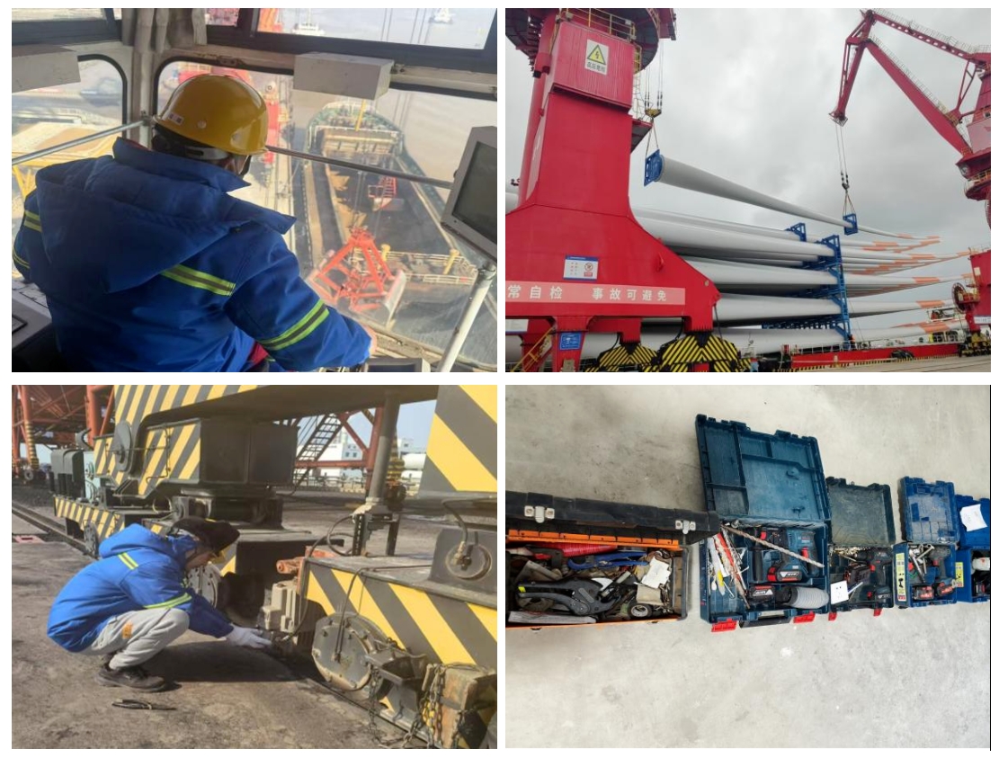 高大聳立的起重機矗立港區碼頭,正確執行門機工的實時操作指令,配合指揮員、安全員的工作指令,一抓一卸間完成貨物的裝卸工作,用專業的技術和看得見的效率,提高港區貨物吞吐量的同時提升客戶滿意度;電工師傅們手持一應俱全的電工設備,在縱橫交織的線路設備巡查巡檢保障港區所有的設施設備健康在線,確保港區安全生產運營,為射陽港區保質保量完成年度目標任務奠定堅實基礎。