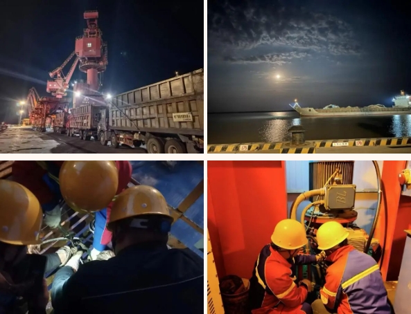 星斗轉(zhuǎn)移間,港區(qū)燈火織就金色蛛網(wǎng)。維保員謝凱登上7#門機(jī),在操作司機(jī)進(jìn)行作業(yè)前試運行時,由下而上逐項檢查“四大機(jī)構(gòu)”各鉸點工況,這個已經(jīng)從業(yè)達(dá)十年的“設(shè)備醫(yī)生”,各個異常部件,都逃不過他的“聽診”;此刻,碼頭上4臺門機(jī)、16輛短駁車輛正接受作業(yè)前深度“體檢”,設(shè)備完好率99.9%的紀(jì)錄在月光下悄然刷新;遠(yuǎn)處傳來貨輪悠長的汽笛,現(xiàn)場調(diào)度員使用高頻指揮著船舶乘潮進(jìn)港,用精準(zhǔn)、精致將潮汐、貨種、作業(yè)效能編織成最優(yōu)解的算式。