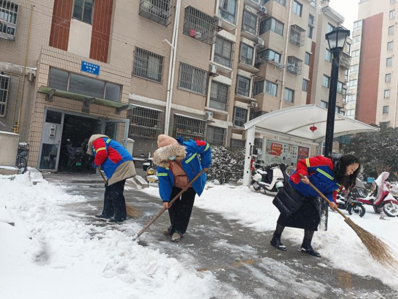 在鹽城幼兒高等師范學(xué)校南校區(qū),鹽城港物業(yè)團(tuán)隊(duì)連夜啟動(dòng)應(yīng)急預(yù)案,天亮前便投入掃雪除冰戰(zhàn)斗。大家分組協(xié)作揮鍬破冰、清掃積雪,在教學(xué)樓、宿舍樓出入口細(xì)心鋪設(shè)防滑草墊,經(jīng)過(guò)兩小時(shí)持續(xù)作業(yè),為師生開(kāi)辟出條條暢通無(wú)阻的“平安路”“暖心道”。風(fēng)雪中,物業(yè)人員俯身清掃的身影,成為校園里最安穩(wěn)的風(fēng)景。