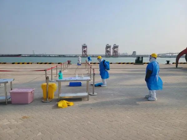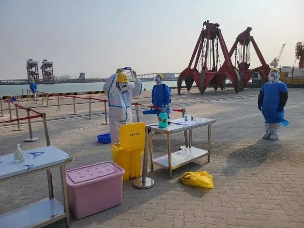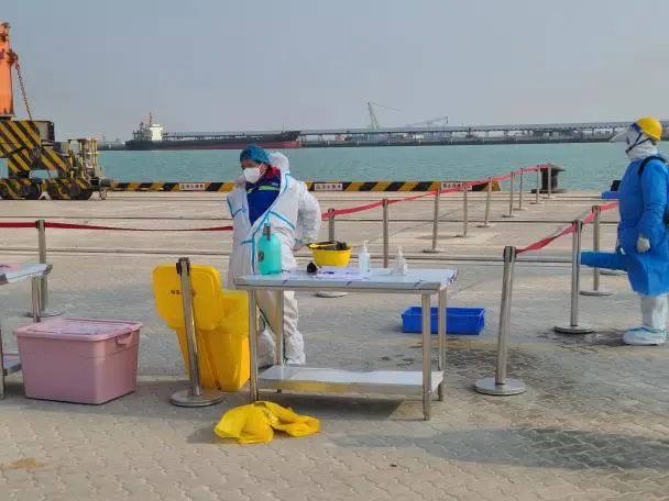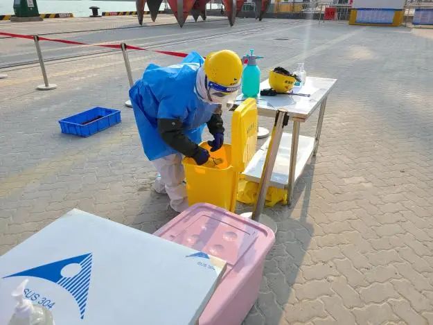 本次演練從實(shí)戰(zhàn)出發(fā),結(jié)合港口實(shí)際,檢驗(yàn)港口一線防疫工作人員對(duì)核酸檢測呈陽性人員的發(fā)現(xiàn)、隔離、疫情報(bào)告、轉(zhuǎn)運(yùn)、個(gè)人防護(hù)及消殺等能力。